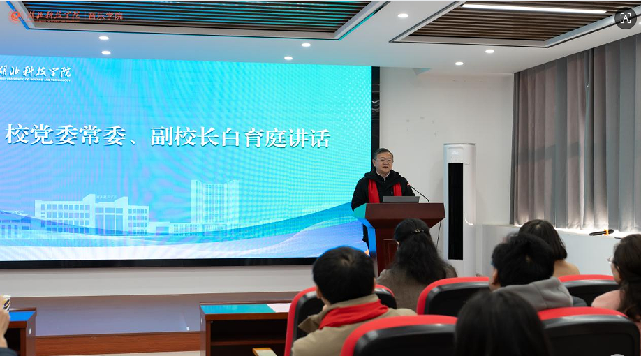 校党委常委、副校长白育庭介绍了湖北科技学院八十余载的办学积淀与发展成就,高度肯定了音乐学院在特色办学、人才培养等方面取得的显著成效。白育庭指出,校友是母校最坚实的后盾和最闪亮的名片,校友会的成立为母校与校友之间搭建了情感联结、资源共享、共同发展的重要桥梁。他希望音乐学院校友会传承湖科精神,凝聚校友智慧力量,持续深化交流合作,期盼广大校友始终心系母校、关注母校,常回家走走看看,积极为学校和学院的建设发展建言献策、添砖加瓦,与母校携手共创美好未来。