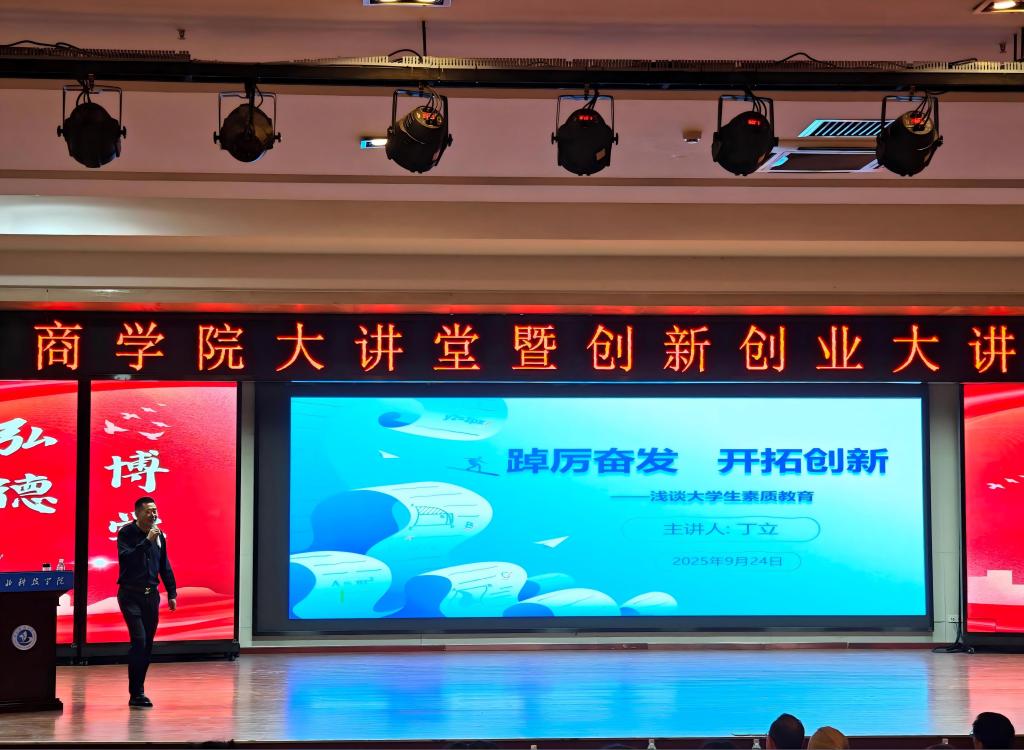 9月24日晚,湖北科技学院第二期商学院大讲堂暨创新创业大讲坛在图书馆学术报告厅隆重举行。讲座特邀我校1988届临床医学系优秀校友、从教三十七年的教育工作者丁立担任主讲,围绕“踔厉奋发、开拓创新”主题,与在场师生展开了一场关于素质教育与青年成长的深度对话。
