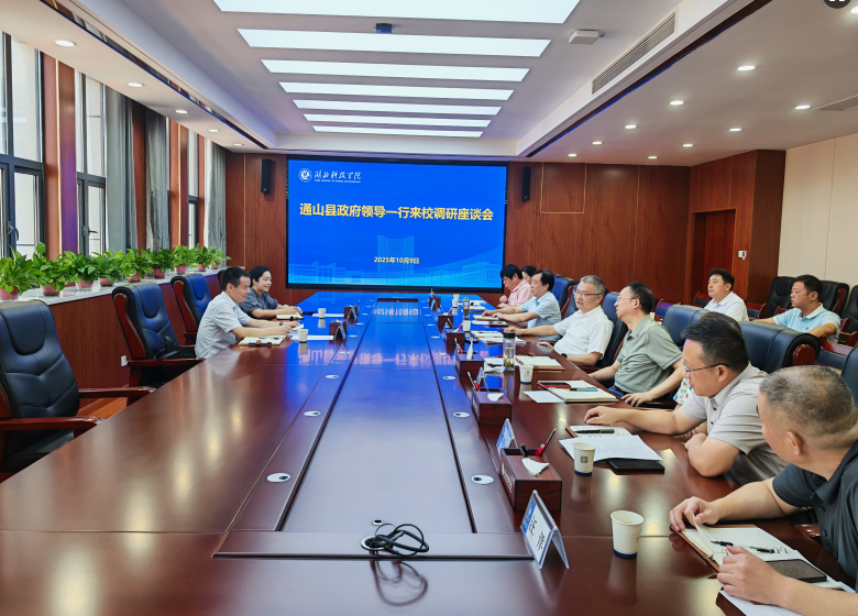 2025年10月9日,通山县政府副县长孔凡定、夏铺镇党委书记曾欣宜一行莅临湖北科技学院,就深化乡村振兴合作开展调研座谈。湖北科技学院党委副书记、校长李岱,党委常委、副校长胡旺平及学校相关部门负责人参会,会议由社会合作与校友工作处处长陈洪国主持。
