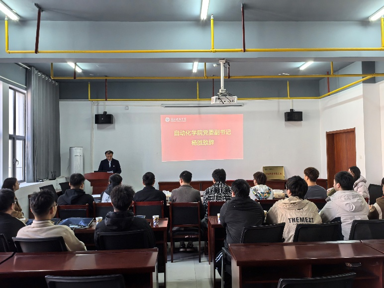 接下来学院党委副书记杨胜发表致辞。他回顾了自动化学院的发展历程与办学成就,强调了校友资源对学院建设的重要意义,希望以校友会成立为契机,搭建起学院与校友沟通的坚实桥梁。同时,杨胜副书记宣读了学校校友总会关于同意成立自动化学院校友会的批复文件,正式宣告自动化学院校友会成立。